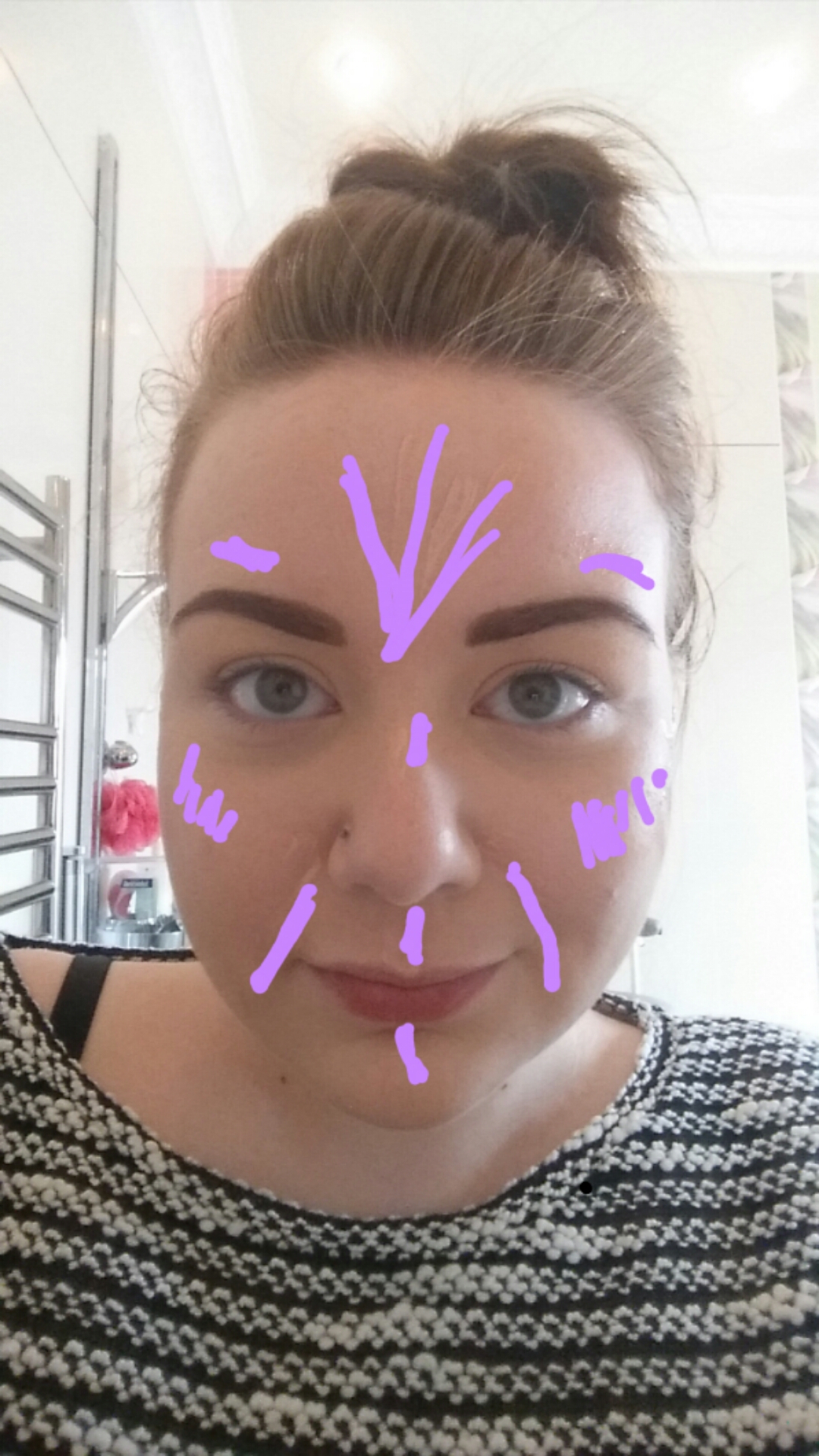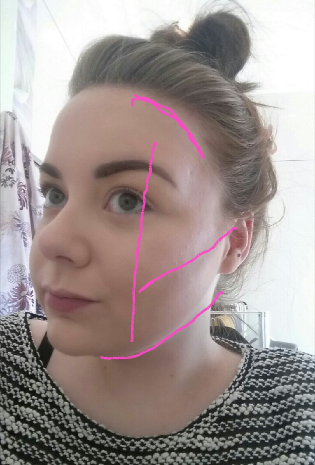 Next I will use the contour just under my jaw line, and at the edges of my forehead. I try to avoid the temple area because this tends to be naturally lighter, but I contour around my hair-line very subtly.