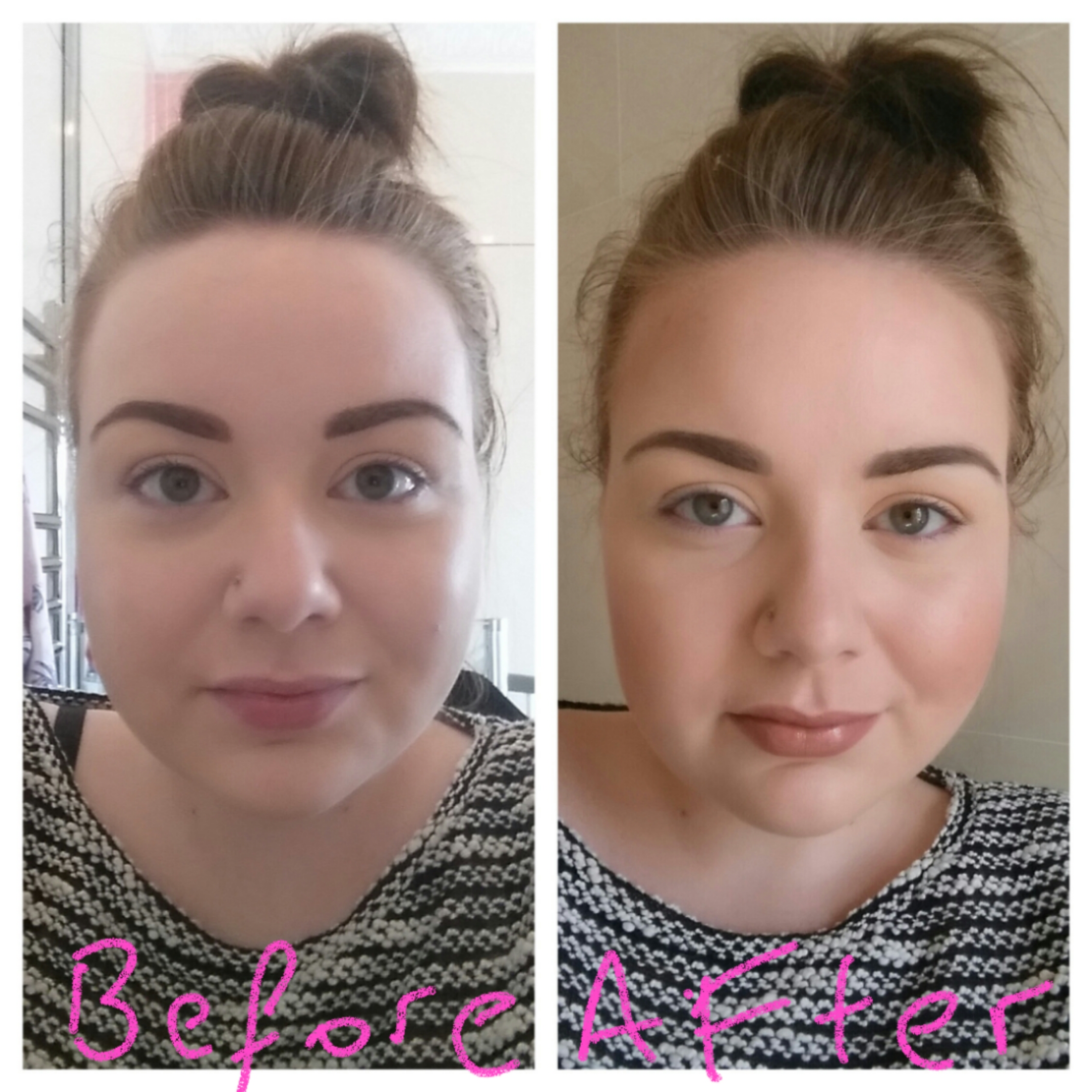 With that in mind we will move on to the tutorial. First, have a look at my before and after photos; on the left I have just applied my foundation and concealer (and of course filled in my brows!). On the right is the completed look. The difference even subtle highlighting and contouring makes is amazing.