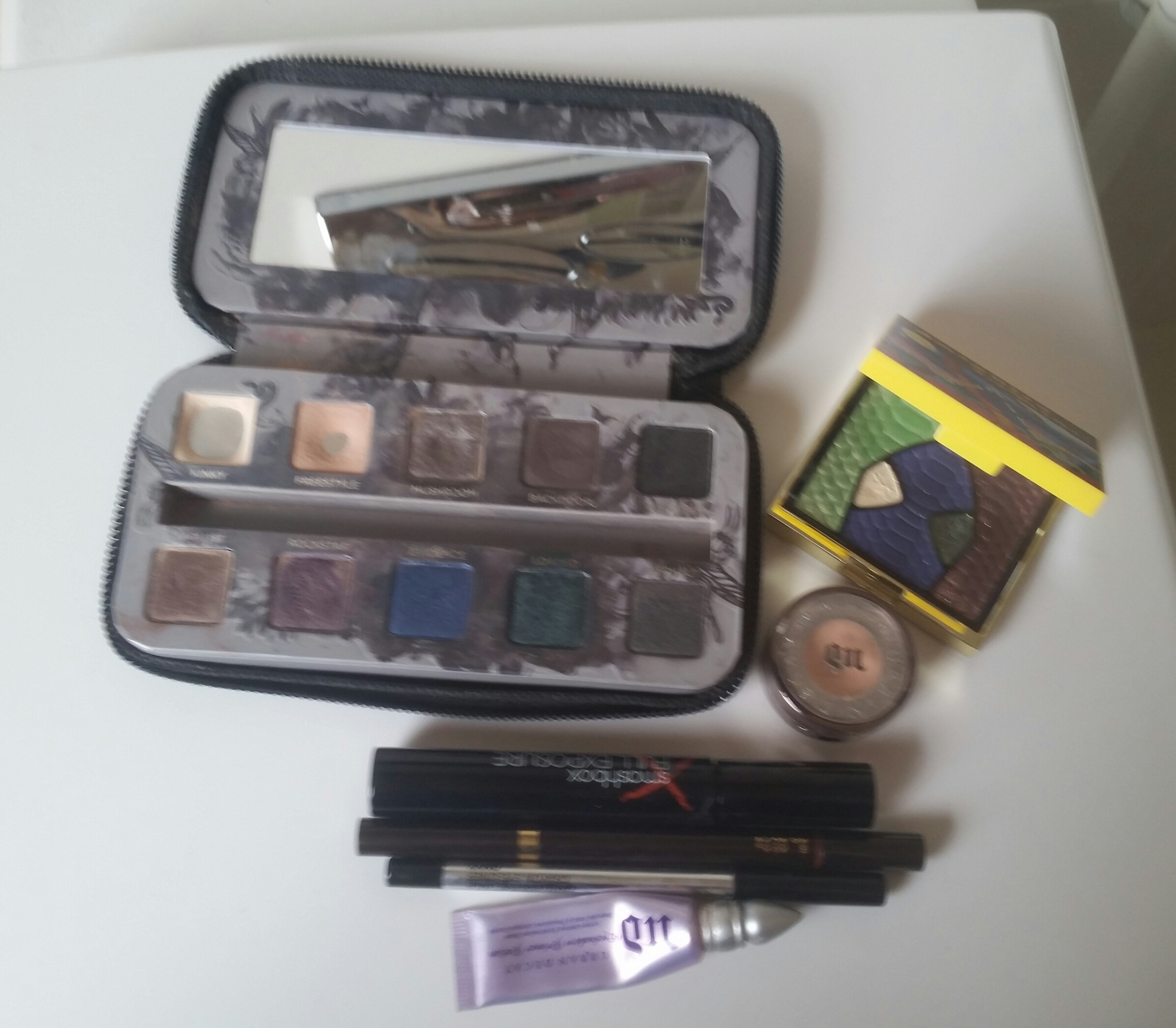 Eyeshadow(s): Urban Decay – Smoked Loaded, and Smashbox – SantiGold Palette, glitter green