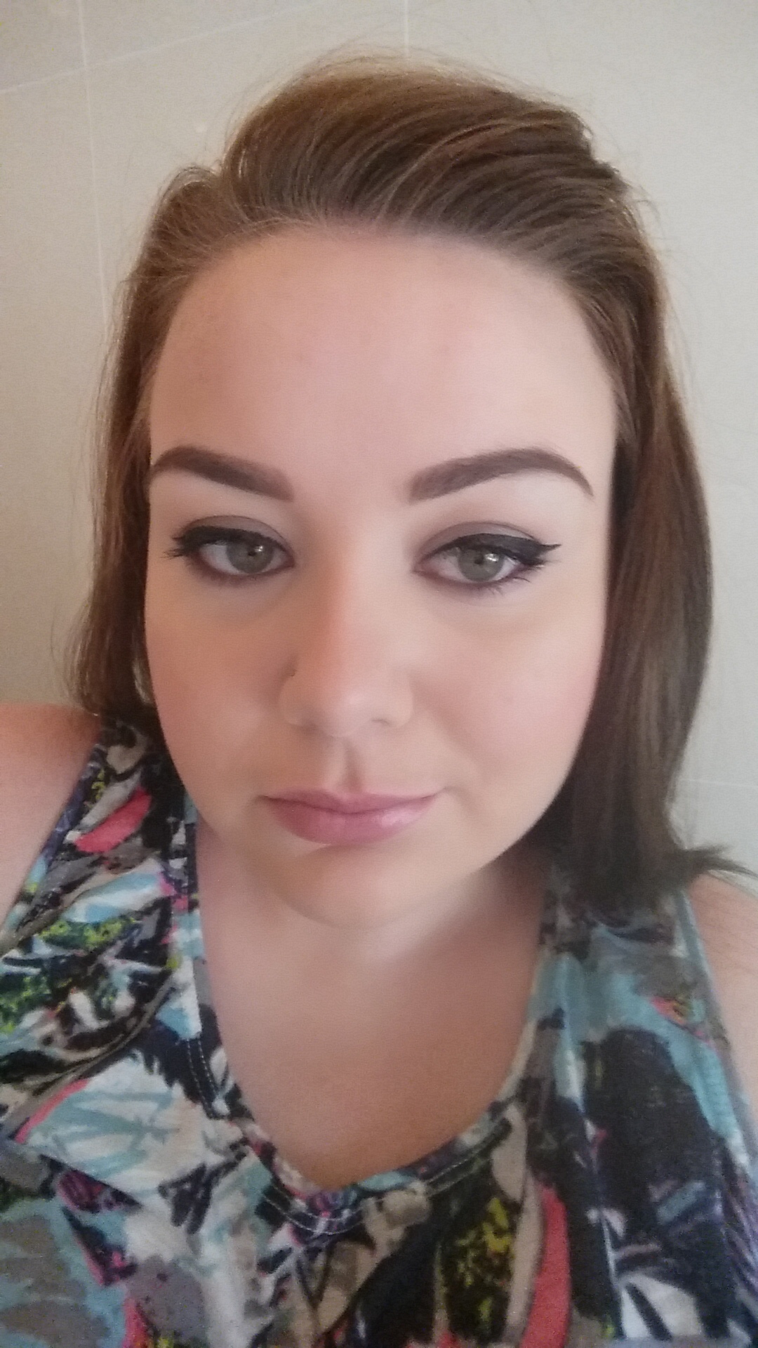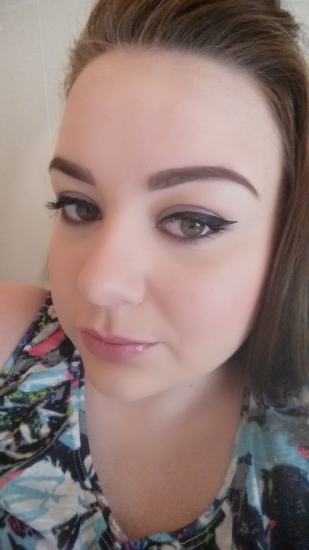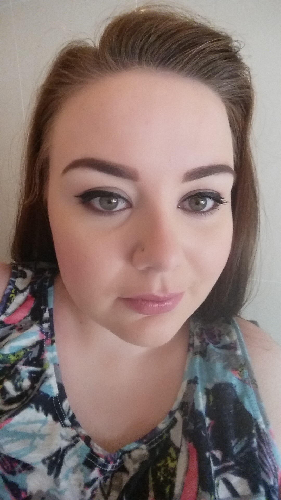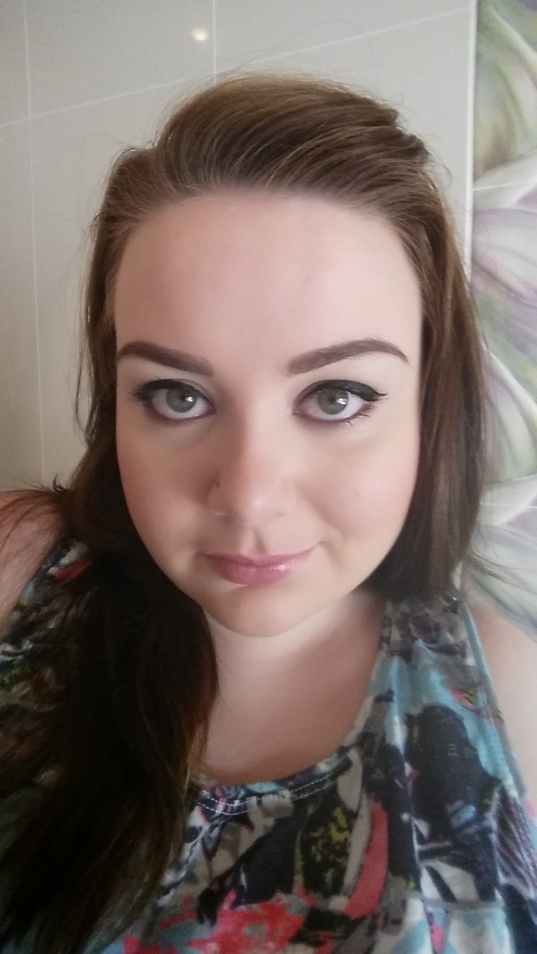 I am wearing MAC’s Dainty blusher, this is a lovely pale blusher which has featured in many of my recent posts. It’s a very pretty pink colour which with light application creates a very feminine look. I also applied highlighter to my cheekbones, my forehead, and down my nose. This just helps to make you look a bit fresher.