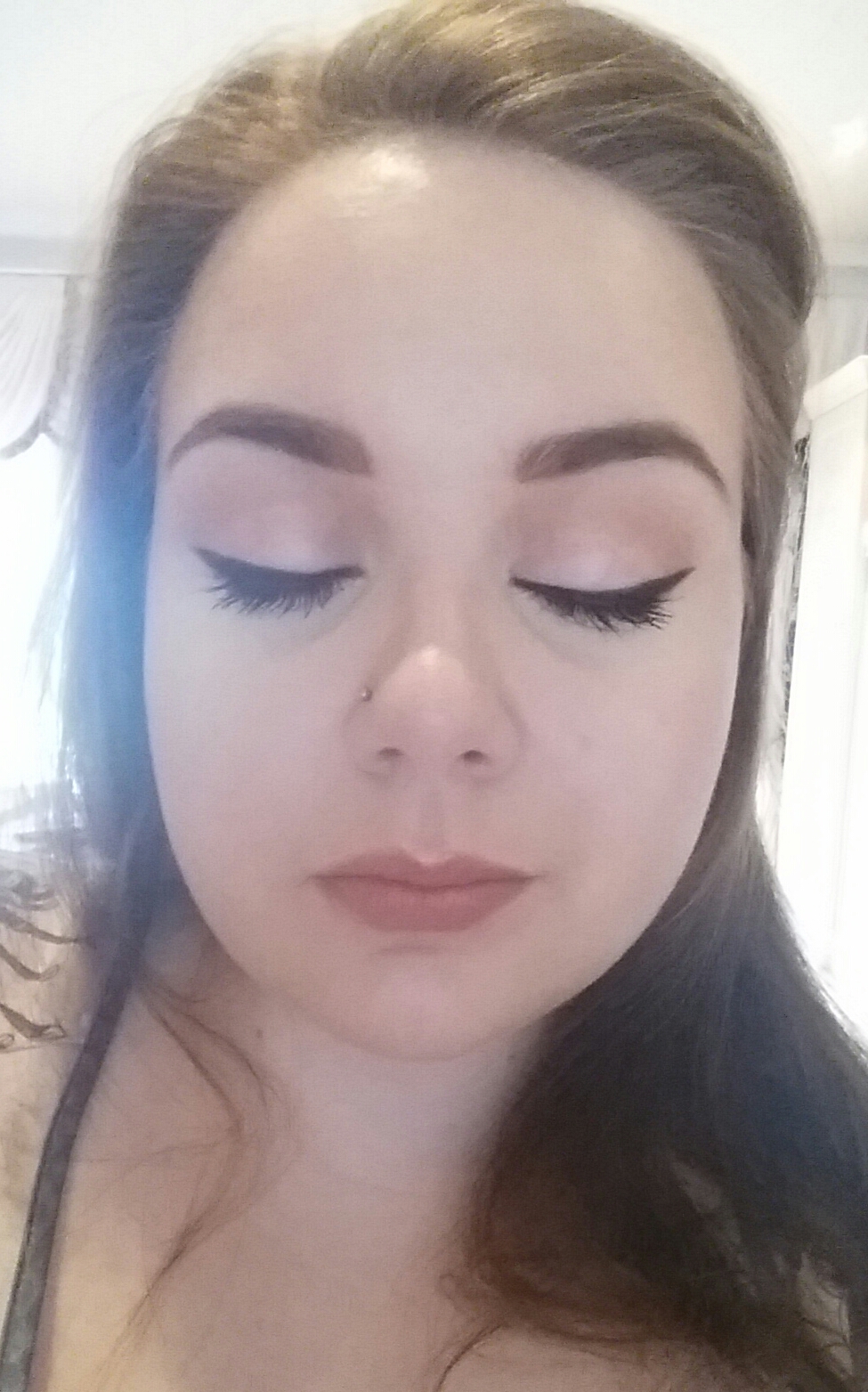 As always start with a primed surface. Using a big fluffy blending brush apply a transition shade to the crease area. My favourite for this look is MAC’s Soft Brown. Then take a very soft pink shade and apply this to the lid area. I usually use my finger for this because it doesn’t need to be precise. Just dab it across the lid and blend well with the transition. Then, taking your black liner of choice, line your upper lashes. I always include a substantial flick to doll it up a bit, but it works just as well without the flick.