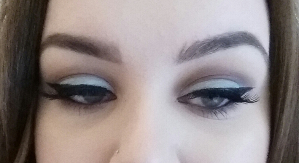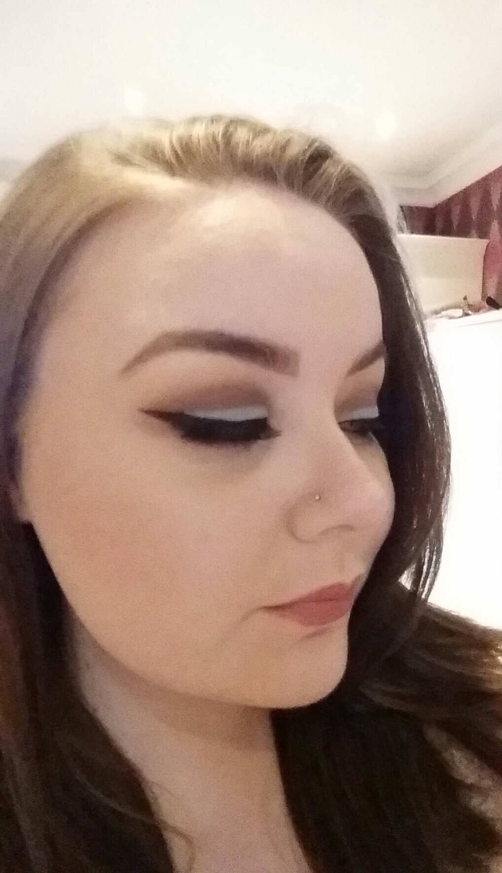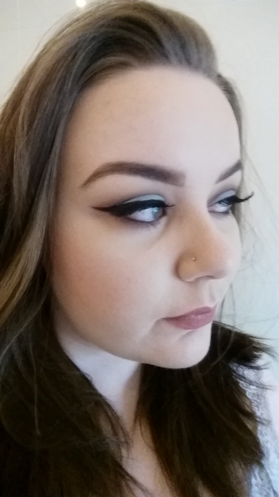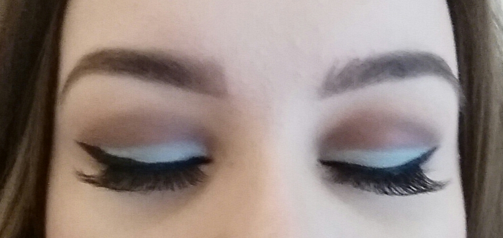 As always start off with a prepped and primed base. I have mentioned them a hundred times before but once again, the two primers I use are Charlotte Tilbury Wonder Glow for my face and Urban Decay Primer potion for my eyes. I also apply my concealer to my eyes using a beauty blender. This eye look is all about building up the colour as you go. The first shadow I applied is Peach Smoothie by Makeup Geek, this is a lovely soft peach shade which is a perfect transition colour. I applied this very high in the upper crease blending it towards my brows. I then applied MAC’s Soft Brown to my upper crease area, not taking it as high as Peach Smoothie. Remember to keep blending. Then I took Makeup Geek’s Barcelona Beach and applied it to my crease area, from outer corner to inner, dragging it out at the outer corner. I pushed this up above the crease line and I brought it down across my lid well below the crease too. This stage took the longest because it takes patience to build up this shadow to get the right intensity. It also needs a lot of blending so that it looks seamless. I wanted it quite dark so I just kept blending it and adding more product to the brush. Next, using a small eye liner brush I outlined the area I was going to apply Clearwater. I wanted it across my lid but I wanted to keep it quite low so that it was not near the crease. I drew a line across the middle of my lid, following the curve of my eye from inner corner to outer. I dragged out the line on the outer corner because I wanted to create an elongated outer flick. I then used a flat shadow brush and filled in the lid with Clearwater. I really packed it on to make the most of the pigment. This is one of the few times when I will say don’t blend this colour! The lines need to be sharp and precise to create a good contrast with the dark shades above it. I then applied black gel liner creating a very bold flick at the outer corner. It is important to clean up under the eye area. This will help sharpen the outer flicks. The liner should be extended further than Clearwater so that the bright blue shade is kept low and tight on the lid. This is a bit hard to explain but have a look at the photo below and it will make more sense!